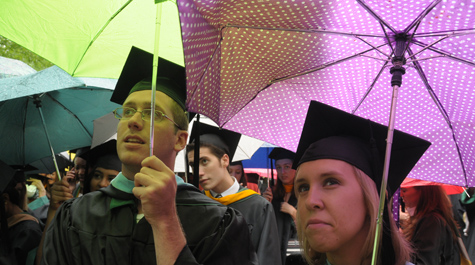 The College awarded approximately 1,400 undergraduate and 760 graduate degrees during the ceremony. Among the graduates was Dillon Niederhut, who earned a perfect 4.0 GPA. Also among the graduates were eight ROTC cadets, who were commissioned into the Army yesterday and one student who was commissioned into the Marine Corps. Also receiving her degree yesterday was Emily Johnson, the College's first graduate from its Coast Guard Auxiliary detachment, the first of its kind in the nation.