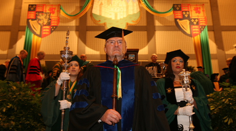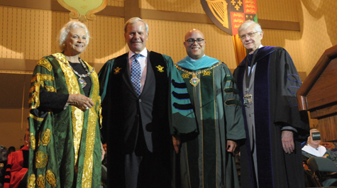 The honorary degrees were presented by William & Mary Chancellor Sandra Day O'Connor and Rector Michael K. Powell, who took part in his final Commencement as chair of the College's governing body. Powell will be stepping down this summer following two terms on the College's Board of Visitors. Also leaving the College this summer is Provost Geoff Feiss, who served as one of the Class of 2009's honorary marshals during the Commencement.During her brief remarks, O'Connor encouraged the graduates to always remember their alma mater.
