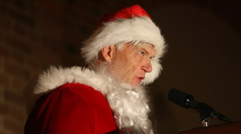 After the student speakers came the traditional guest appearance by Santa Claus, who this year greatly and curiously resembled William & Mary President Taylor Reveley. Saint Nick's reading of ‘How the Grinch Stole Christmas' as always never failed to invite smiles, laughter, and some good-natured if uninvited audience participation. After the reading of the "Grinch," came the traditional holiday music mash-up by the student a capella group, The Gentlemen of the College. And finally, the main event of the evening -- the Yule Log itself was paraded through the crowd and into the Great Hall where the scores of attendees waited patiently with a healthy dose of holiday cheer for their chance to follow it inside and throw their worry bearing holly into the historic building's fireplace. Yet for all the joviality, the shivering, and the thoroughly good-natured pushing and shoving outside, the mood inside was peaceful and reflective. Serenaded by the Gentlemen, the members of the Tribe strode reverently through the old building, pausing one by one to reflect on their personal sprig of holly by the blazing Yule.