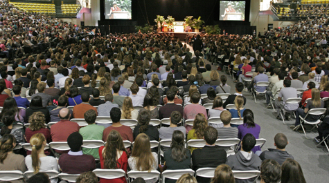 An audience comprised of students, faculty, staff and 3,000 non-university attendees who purchased their tickets in just 16 minutes when they went on sale on Sept. 19, laughed appreciatively. Although His Holiness never left the stage during his 90-minute presentation, the audience relished every opportunity to interact with him, even if it was just by making eye contact or nodding their heads at one of his questions or comments.