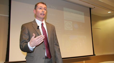 Swaddle’s presentation was drawn from research related to the 2002 West Nile outbreak among humans. He worked with Stavros Calos ’08, who Swaddle noted was a geology major “and did this just for fun.”