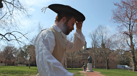 Third-person interpretation, Jenkins explained, is the act of looking back at the history and contextualizing it. History classes are an example of third-person interpretation, as are the tours of historic campus given by members of the Spotswood Society. On Saturday, students in the Spotswood Society will be fleshing out the historical events that lead to and follow William & Mary in 1783.