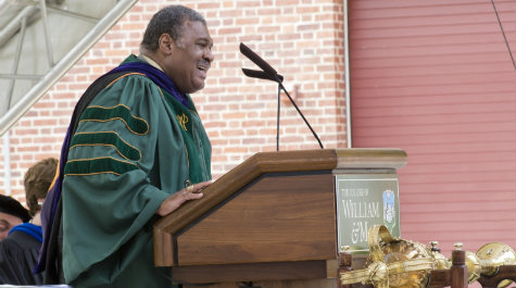 Thomas, who at age 32 was the youngest person and the first African-American to be appointed to serve on the Supreme Court of Virginia, said he relished the chance to speak to the approximately 230 J.D. and LL.M. graduates, who were joined by about 1,600 well-wishers for the Law School's graduation ceremony at the Lake Matoaka Amphitheatre on May 13. "I've seen this group before," he said, recalling when he spoke to the J.D. class during their first-year orientation in August, 2009. "They didn't have the green robes and berets ... they were wide eyed and filled with wonder and maybe a little bit of fear about what was to come. It has been a joy to see you grow and change and evolve to what we have before us today."