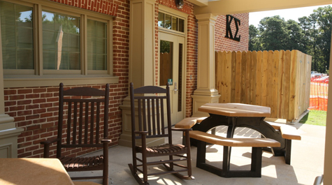 The houses, secured with an electronic ID access system, also offer places for students to enjoy the outdoors, with front and back porches complete with rocking chairs and picnic tables.