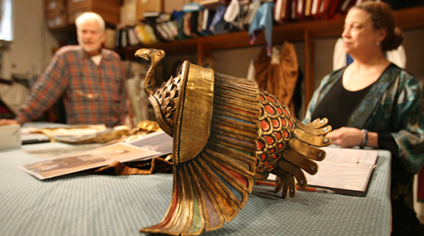 Although Wesp’s summer was consumed with costuming the Virginia Shakespeare Festival and preparing to costume the upcoming W&M theatre production of Dancing at Lughnasa, she managed to complete the restoration work on all three costumes and the headpiece in time for the arrival of her fellow W&M alumna back on campus.
