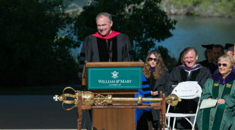 Kaine, who served as mayor of Richmond, as lieutenant governor and as governor of Virginia before his election to the Senate in 2012, spoke to the approximately 250 J.D. and LL.M. graduates who gathered with friends and family members for the ceremony at the Martha Wren Briggs Amphitheatre at Lake Matoaka.