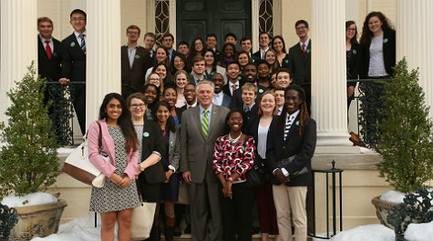 As the time for conversations with lawmakers drew to a close, the team of student lobbyists made its way to the front steps of Virginia’s Executive Mansion, the residence of Governor Terry McAuliffe who met them there for a group photo.
