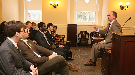 After departing the Executive Mansion, the attendees met with Delegate Monty Mason ’89 (D-93rd), an alumnus representing William & Mary’s House district and an avid Tribe basketball fan. He discussed his legislative role and encouraged the students to stay in touch with their elected representatives throughout their lives.
