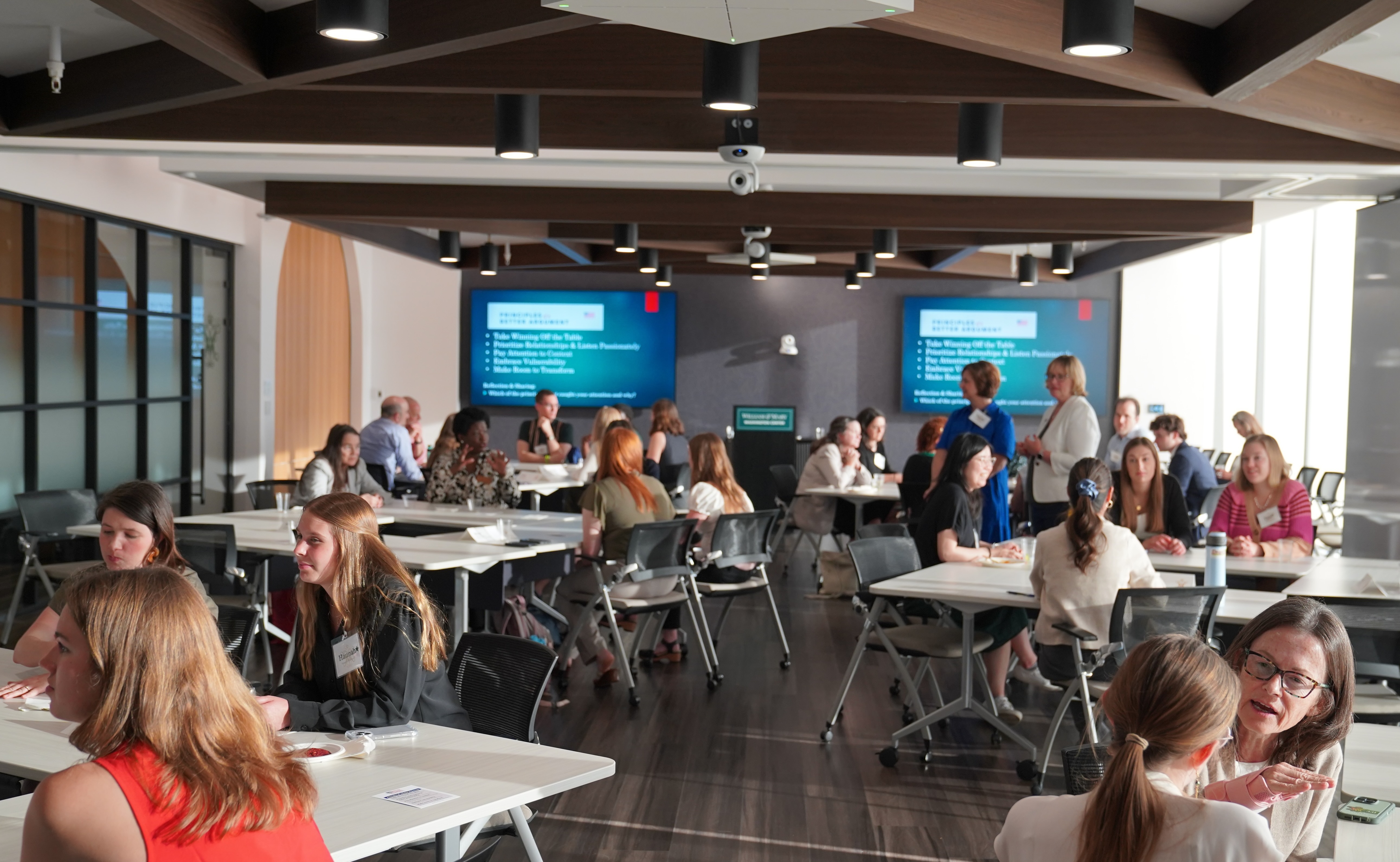 The Center offers its unique space and in-house event services to the public. Known for its flexible accommodations, the Center is a one-stop shop for private and public programming for the W&M community and beyond. You can hold a reception, fundraiser, conference, retreat, or panel. Additionally, meet your colleagues from other institutions, bring your class to D.C. for a day trip filled with speakers, site visits, and more!