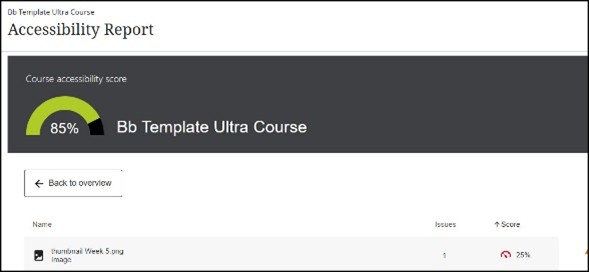 This report provides a summary and overview of your course accessibility score in one location. This report gives you a wide analysis of accessibility issues and also highlights which ones you should be prioritizing first.