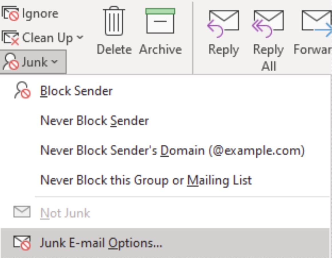 Block a Sender (Mark as Junk)Emails delivered to your Inbox can also be routed to the Junk mail folder. Also, the sender of the emails can be blocked if you no longer wish to receive emails from that account. To do this in the web version of Outlook: