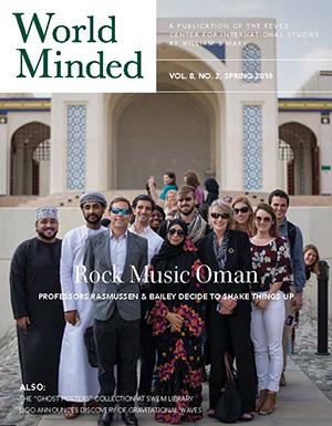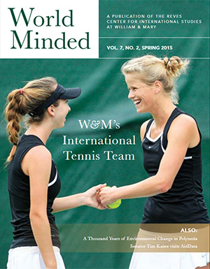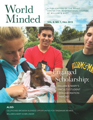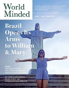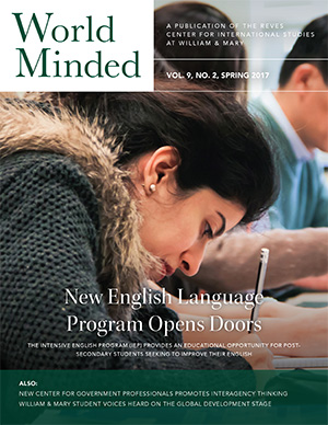 World Minded, the Reves Center for International Studies' semiannual newsletter, is published in the winter and summer. World Minded contains articles and announcements on William & Mary's internationally focused programs and initiatives, as well as features on the international research and experiences of the W&M community.