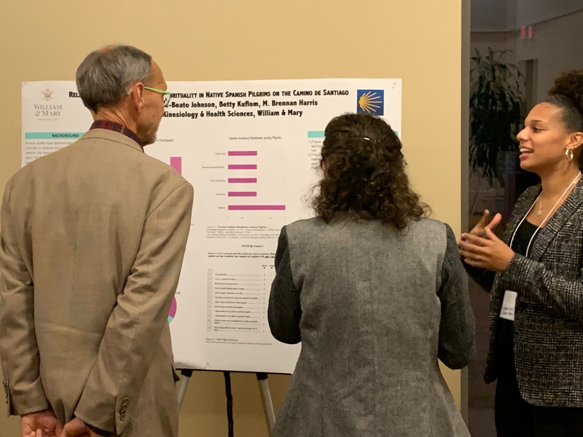 Participants from the 2019 W&M Summer 2019 study abroad program in Santiago de Compostela gather for a group picture after presenting their research at the Institute for Pilgrimage Studies Symposium. Top row: Andrew McLaughlin ’21, Collin Lille ’21, Lydia Grund ’21, Dr. Ben Boone (faculty); Bottom row: Emma Eubank ’21, Alex Maceo ’21, Madison Lee ’21.