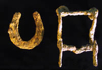 Photo (right): During the Civil War, the north bank of Bailey's Creek was a strategic position for Union forces protecting the massive depot at City Point. Military correspondence refers to various units stationed there, including a cavalry depot in July 1864. Archaeological traces of their stay were found near the old plantation house (see arrow) at Nanley Point. Among the artifacts from a trench feature were a cavalry issue bridle bit, a horseshoe, and minie bullets.